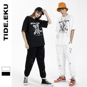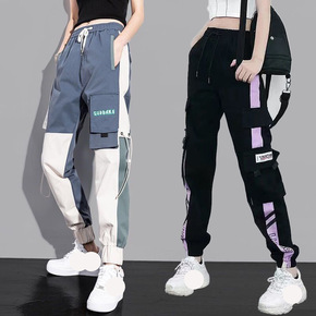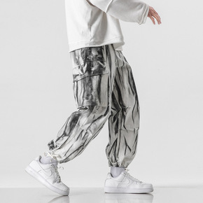 2021春装新款工装裤扎染雾霾扎花束脚裤宽松休闲裤...