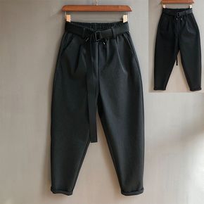 2020秋冬青少年加厚毛呢纯色保暖收口日系休闲呢裤...