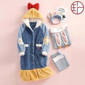 秋冬珊瑚绒睡衣女冬季法兰绒加厚睡袍女长款网红款可爱...