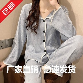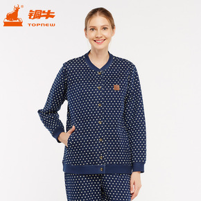 暖棉开襟印花休闲女衫 棒球衫领睡衣家居服上衣VS0...
