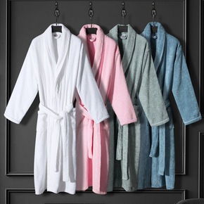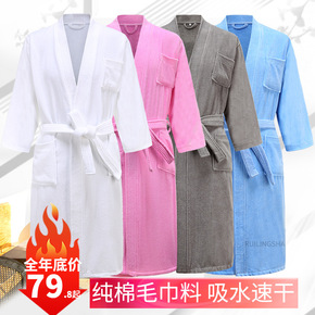 浴衣棉毛巾料浴袍加厚素色成人浴袍毛圈男女情侣睡袍家...