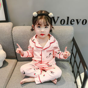 儿童睡衣女春秋棉小孩女宝宝秋季女童开衫套装长袖女小...