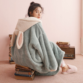 。睡衣女秋冬季珊瑚绒睡袍长款可外穿加厚毛绒可爱家居...