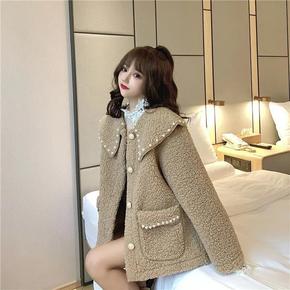 2021秋冬季新款韩版宽松学生娃娃领仿羊羔毛外套女...