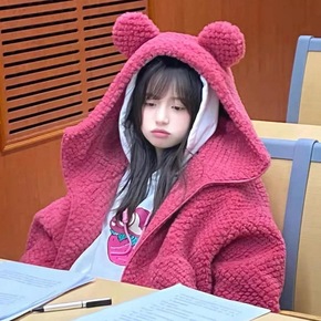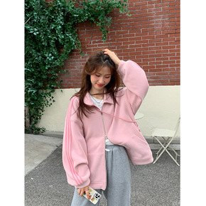 可爱粉色连帽开衫羊羔绒卫衣女学生韩版宽松2022秋...