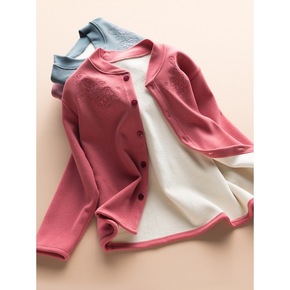 中老年开衫女士奶奶老太太保暖上衣加绒加厚妈妈装毛衣...