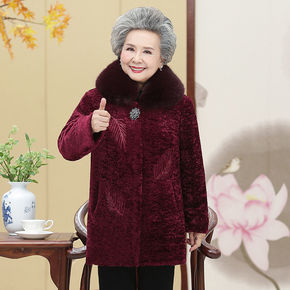 中老年女装冬老年女装冬装老年人冬天衣服妈妈羊剪绒大...
