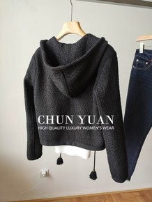 设计感小众抽绳连帽外套女 2022秋冬新优雅休闲宽...