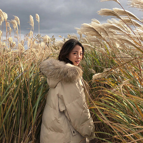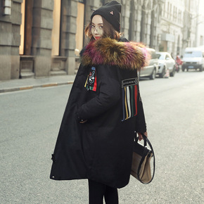 棉衣女中长款2021冬季新款韩版宽松大雪兔毛加厚牛...