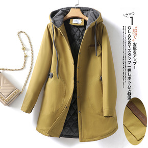 2019冬季时尚舒适口袋连帽棉衣收腰中长款棉衣女3...