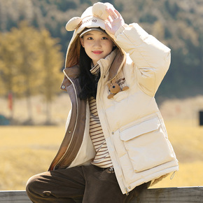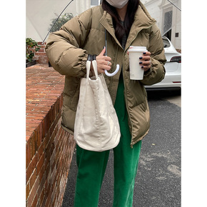 时简 慵懒风羽绒服女2022秋冬新款韩版立领白鸭绒...