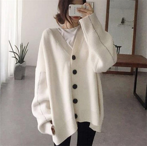 大码气质开衫毛衣外套女韩版秋冬新款慵懒纯色宽松V领...