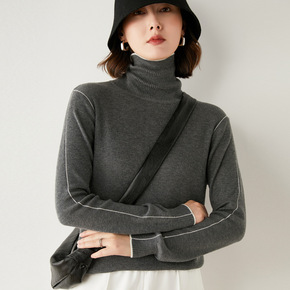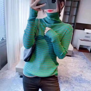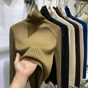 欧货毛衣打底衫女秋冬新款坑条钉扣洋气设计感上衣高领...