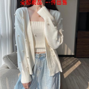 白色毛衣外套女秋冬长袖钉珠针织衫韩版宽松开衫网红气...