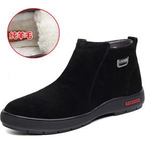 冬季羊毛男士棉鞋磨砂真皮男鞋加绒高帮保暖休闲棉皮鞋...