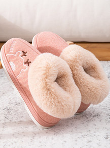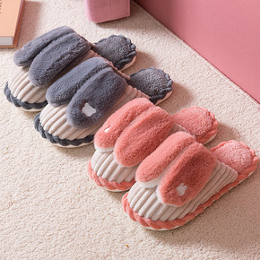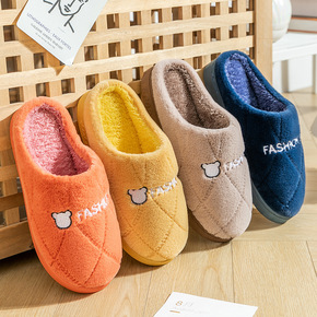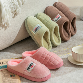 时尚居家保暖棉拖鞋女秋冬季简约居家舒适厚底家用加绒...