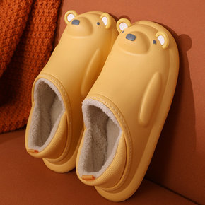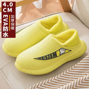 防水棉拖鞋女冬季家居室内可爱加绒保暖家用厚底包跟情...