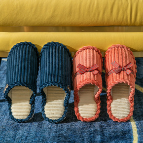 棉拖鞋女时尚百搭蝴蝶结居家厚底保暖加绒舒适情侣室内...