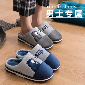 2019秋冬棉拖男居家情侣棉鞋男防滑家用拖鞋加绒小...