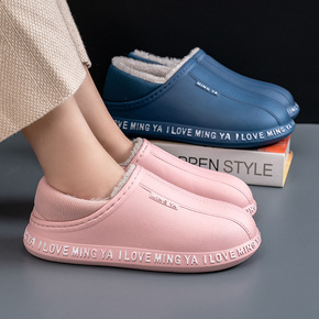大码情侣拖冬季新款居家棉拖女家用月子鞋防滑防水PU...