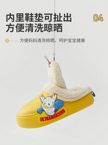 优调奥特曼儿童棉拖鞋宝宝家居室内小男孩冬季款加绒保...
