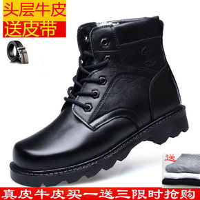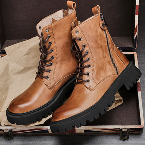 秋冬季真皮马丁靴男士高帮拉链厚底复古皮靴圆头潮流靴...