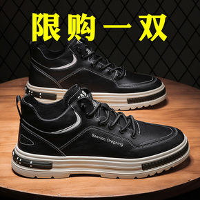 2021秋冬季新款韩版透气休闲鞋男士皮面男鞋潮流休...