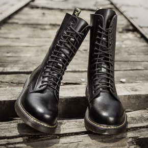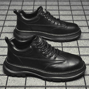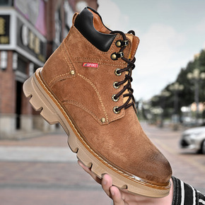 擦头猪皮工装靴马丁靴男士2022秋冬季真皮户外头层...