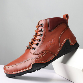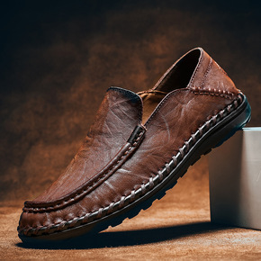 2021秋季新款男士户外休闲鞋头层牛皮中老年鞋子套...