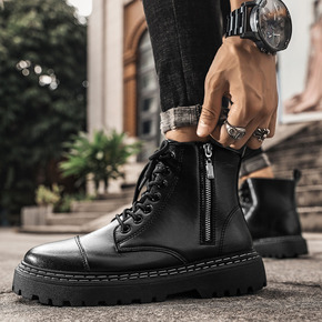 2022男士英伦马丁靴高帮靴黑色男士男短靴时尚皮面...