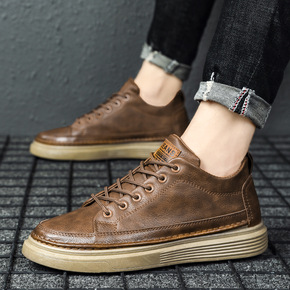 夏季纯色平跟低帮粘胶鞋休闲棕色现货圆头男鞋板鞋时尚...