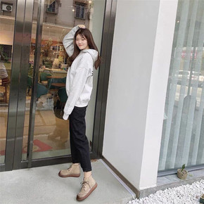 2020秋季新款CLAY拼色高帮小白鞋女系带平底运...