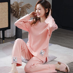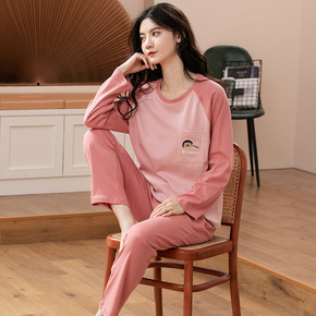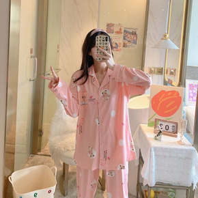 纯棉睡衣女长袖春秋简约韩版卡通宽松大码家居服套装秋...