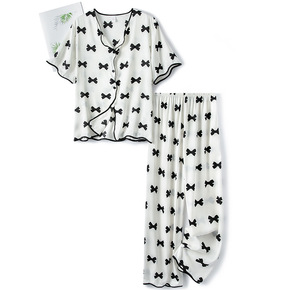 2021夏新款睡衣女波浪蝴蝶结时尚潮流抖音网红学生...
