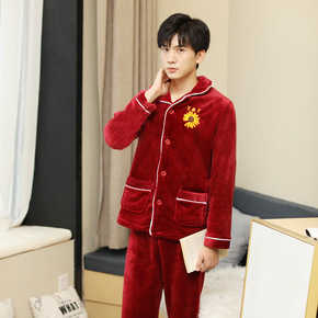 厂家货源直供法兰绒珊瑚绒定LOGO家居服套装长袖男...
