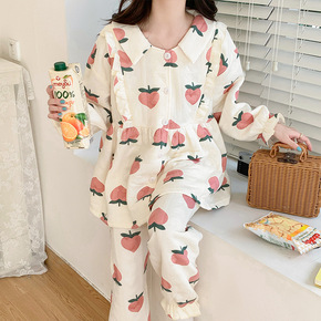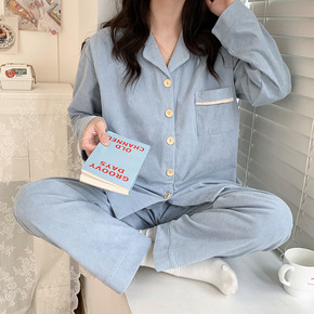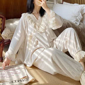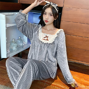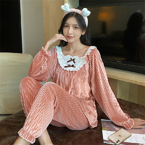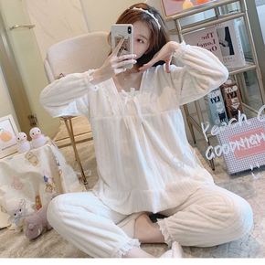 公主风加厚长袖家居服套装女秋冬季韩国甜美法兰绒开衫...