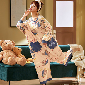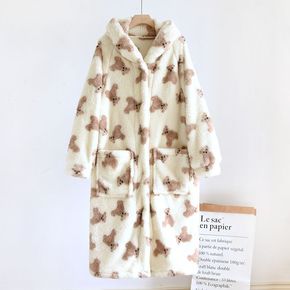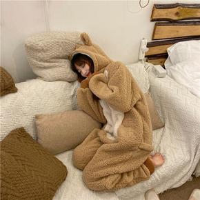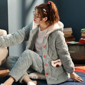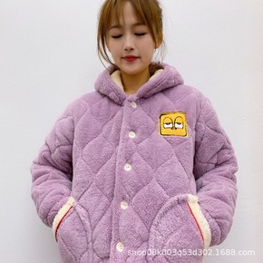 女士睡衣冬夹棉三层加厚长毛绒保暖冬天可爱加绒中长款...