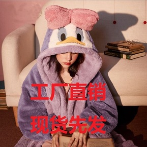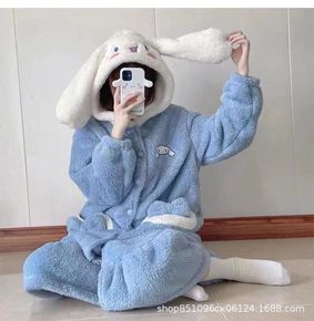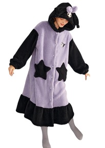 跨境乐町库洛米长款睡袍女秋冬季抱抱绒加厚家居服套装...