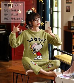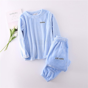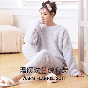 珊瑚绒睡衣女秋冬新款法兰绒宽松圆领套头上衣睡裤家居...