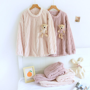 珊瑚绒暖暖套装睡衣女秋冬韩版甜美加厚法兰绒学生可爱...