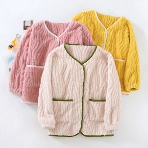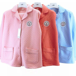 睡衣女加绒加厚柔软上衣2022新款秋冬V领开衫法兰...
