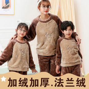 儿童法兰绒睡衣加厚冬款加绒男孩秋冬季男童亲子装女童...