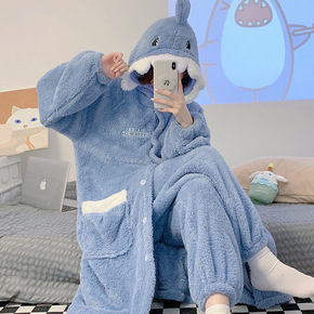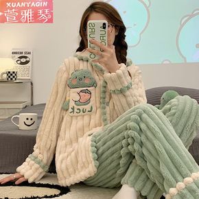 珊瑚绒睡衣女士款秋冬季加绒加厚冬天可爱网红风法兰绒...