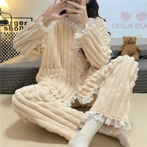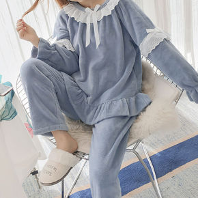 珊瑚绒睡衣女秋冬季加厚保暖法兰绒甜美可爱学生公主风...
