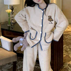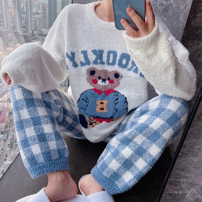 韩国ims珊瑚绒睡衣女冬季加厚甜美可爱睡衣套装保暖...