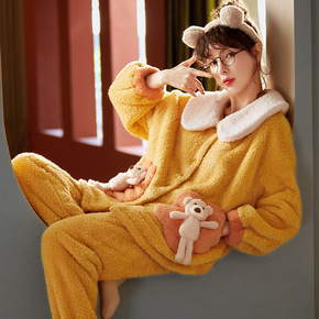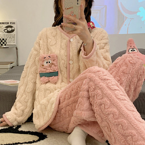 珊瑚绒睡衣女款秋冬季卡通可爱加绒加厚保暖法兰绒女士...