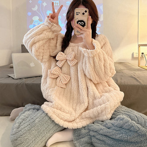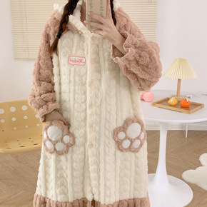 珊瑚绒睡衣女冬季可爱加厚长袖网红法兰绒保暖长款睡袍...