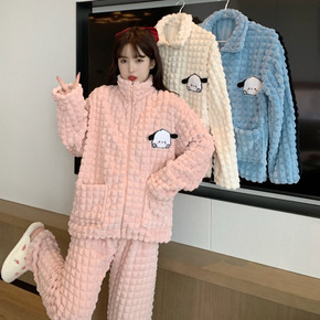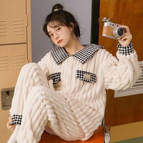 可爱玉桂狗珊瑚绒睡衣冬款女加厚加绒可外穿家居服法兰...