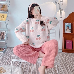 睡衣女秋冬季卡通可爱甜美樱桃珊瑚绒软绵绵加厚加绒家...