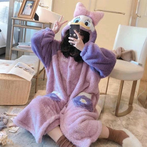 女冬加厚果壳同款长款睡衣珊瑚绒黛西唐老鸭睡袍可外穿...